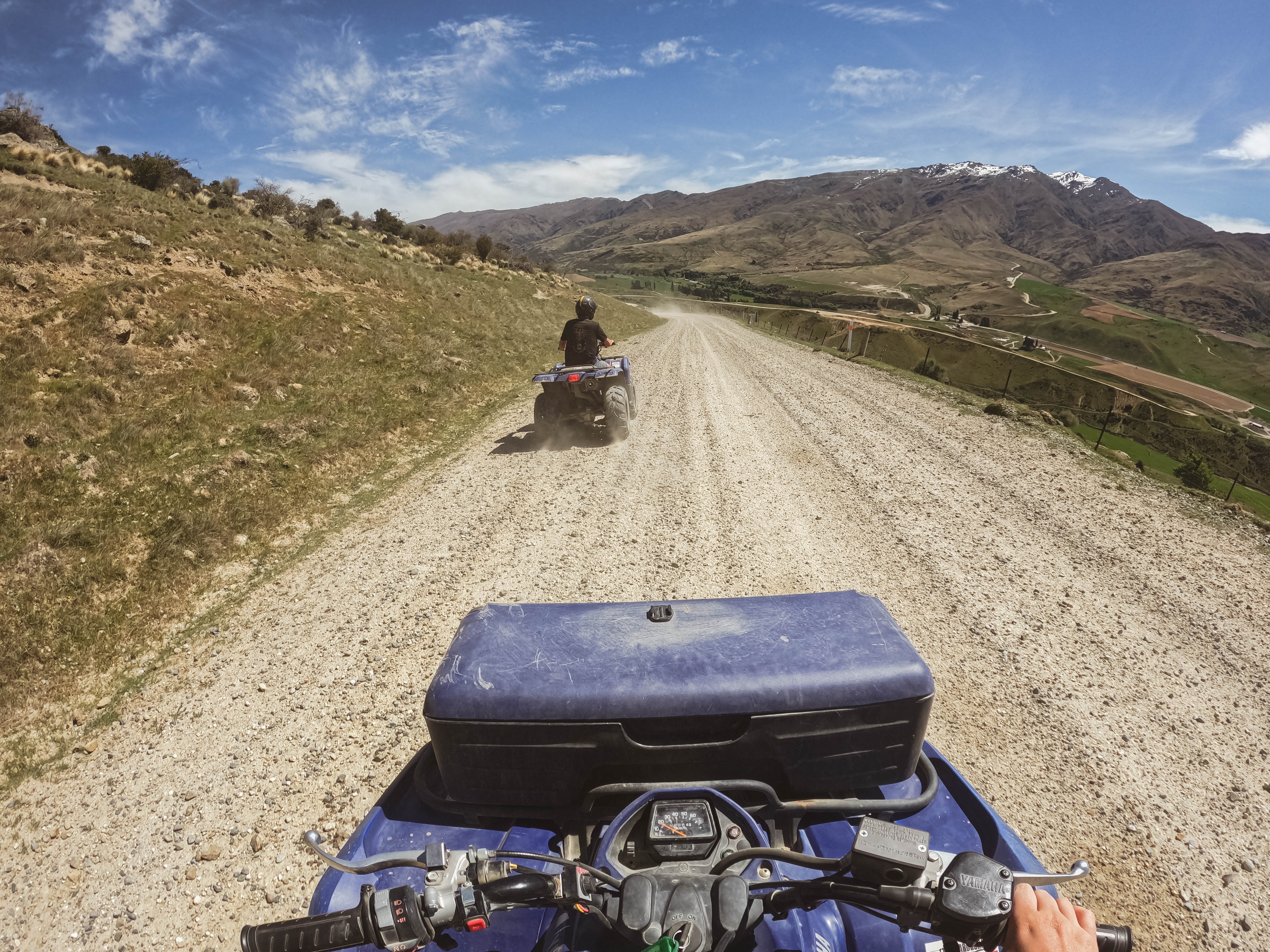 Embark on New Zealand’s highest and best alpine guided quad biking tour. Jump on your very own Yamaha 350cc for a wild ride through the Cardrona Valley. Your expert guide will lead you and the group over a network of epic trails winding to the top of the mountain giving you incredible views into the valley below. Get your speed on as you join the Snow Farm Road and safely buzz right back down to the base. Enjoy river crossings, the beautiful scenery, and commentary from your knowledgeable guide. There is no finer feeling than having the wind flow through your hair surrounded by the most magical alpine environment, we promise you that.