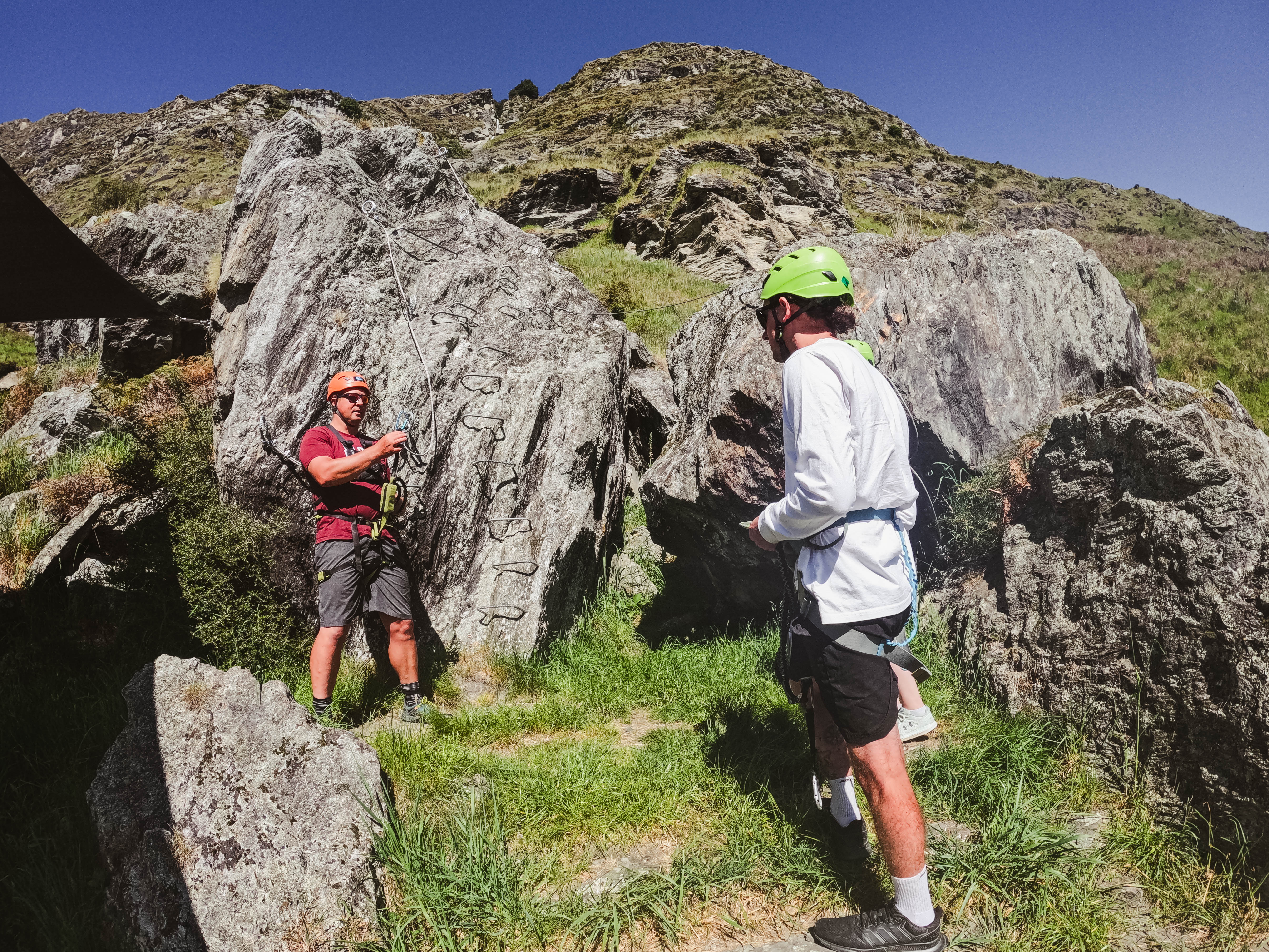 We practiced on a small boulder, Clip 1,2,3,4 move on. It was drilled into us the process of Via Ferrata and how to keep ourselves safe while climbing the rock face. I distinctly remember saying ‘oh wow this is already pretty high as I scrambled around the practice boulder. That thought came into my head again as I swung my legs over the overhang in level 3, the gnarliest bit of the climb, it was also in this moment I was grateful for Mark’s strength and patient nature as he helped me navigate completely new and foreign terrain.